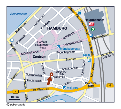 Sie erhalten an Ihrer Karte ein zeitlich unbegrenztes (lebenslanges) Nutzungsrecht für Print und/oder Web. Die Kartenfarben werden entweder harmonisch Ihrem Corporate Design angepasst oder nach einem grebemaps-ColorSet gewählt. Die Karteninhalte werden zweckbezogen und individuell auf Ihren Standort nach kartographischen Modellierungs- und Gestaltungsregeln ausgewählt gestaltet.
